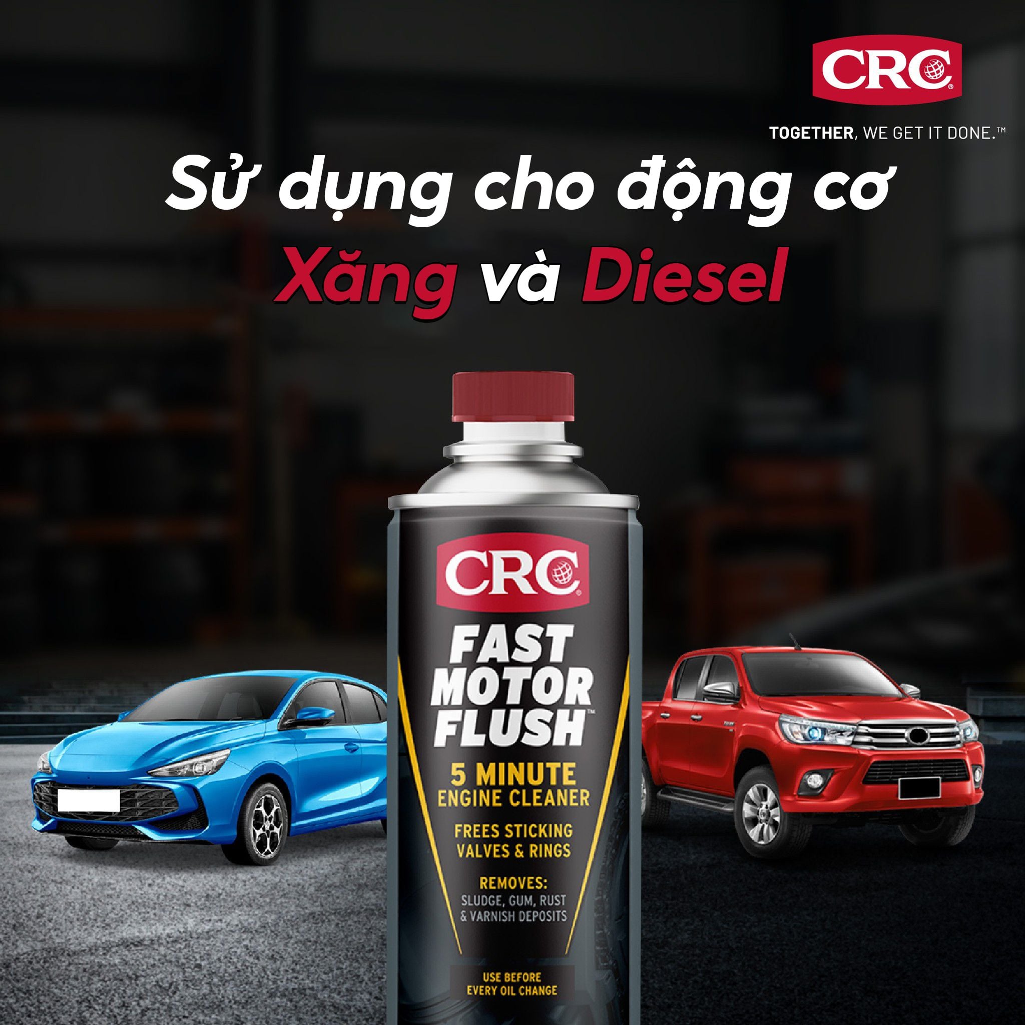 Không sử dụng cho động cơ có tăng áp hoặc siêu nạp.Dùng CRC FAST MOTOR FLUSH ngay trước khi thay dầu.